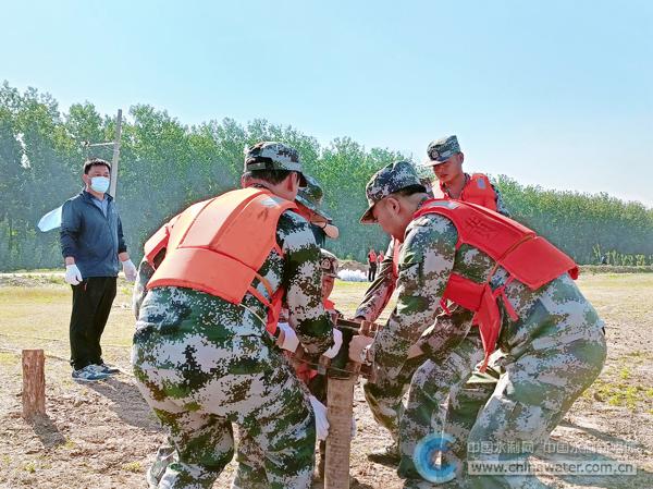 搶險隊員進(jìn)行打樁演練 本報通訊員 李晗