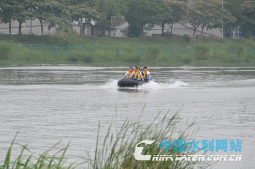 應(yīng)急小分隊(duì)駕駛沖鋒舟趕赴監(jiān)測(cè)點(diǎn)