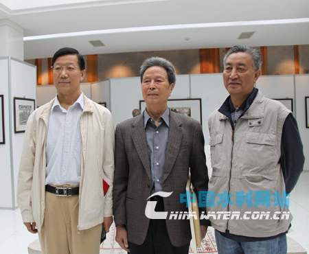 中國水利文協(xié)常務(wù)副主席譚林(右)、水利部離退休干部局黨委副書記邢志勇(左)向莫測表示祝賀
