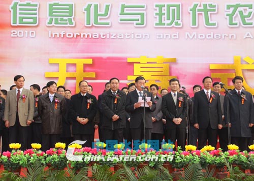 中國水利網(wǎng)站訊。ㄍㄓ崋T 胡亞利)11月20日,水利部副部長胡四一應(yīng)邀出席了在北京全國農(nóng)業(yè)展覽館舉辦的"2010信息化與現(xiàn)代農(nóng)業(yè)博覽會"。本次博覽會是在深入貫徹落實黨的十七屆五中全會精神,加快現(xiàn)代農(nóng)業(yè)建設(shè)步伐之際,由農(nóng)業(yè)部、工業(yè)和信息化部共同主辦的。全國政協(xié)副主席羅富和出席開幕式并宣布博覽會開幕。農(nóng)業(yè)部部長韓長賦、工業(yè)和信息化部副部長楊學(xué)山分別在開幕式上致辭。開幕式由農(nóng)業(yè)部副部長陳曉華主持,國家氣象局局長鄭國光等領(lǐng)導(dǎo)出席。開幕式前,與會代表參觀了博覽會。