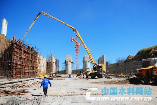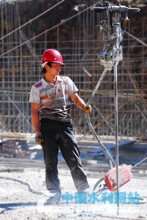 總工程師劉冰介紹說,溢洪道從5月3日正式開盤澆筑,到目前已完成混凝土澆筑總工程量的2∕3,輸水洞工程混凝土澆筑任務基本完成,左右壩段基座混凝土已基本完成,帷幕灌漿正在緊張進行。