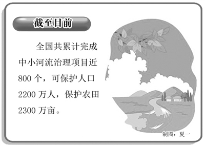國共累計(jì)完成中小河流治理項(xiàng)目近800個(gè),可保護(hù)人口2200萬人,保護(hù)農(nóng)田2300萬畝;安排中央投資193億元,用于1168座。1)型病險(xiǎn)水庫、