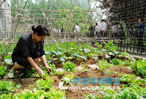 大有恬園小區(qū)一層的住戶在自家小院里種蔬菜、水果,全部采用中水澆灌