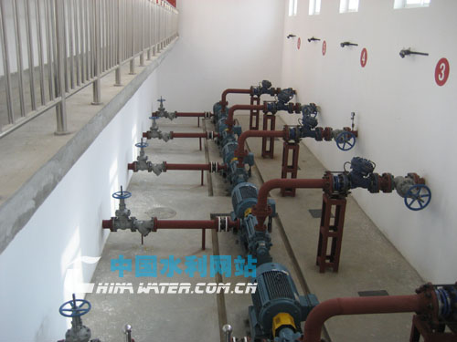 天水市五龍供水站泵房設(shè)備一角