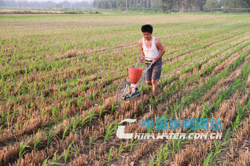 5月29日,在陽谷駱駝巷村麥田里地頭上,兩位婦女開始在麥田中套種玉米,她們一邊勞動,一邊聊著天氣旱情。有對豐收的喜悅,也對眼前的旱情懷有絲絲憂慮。