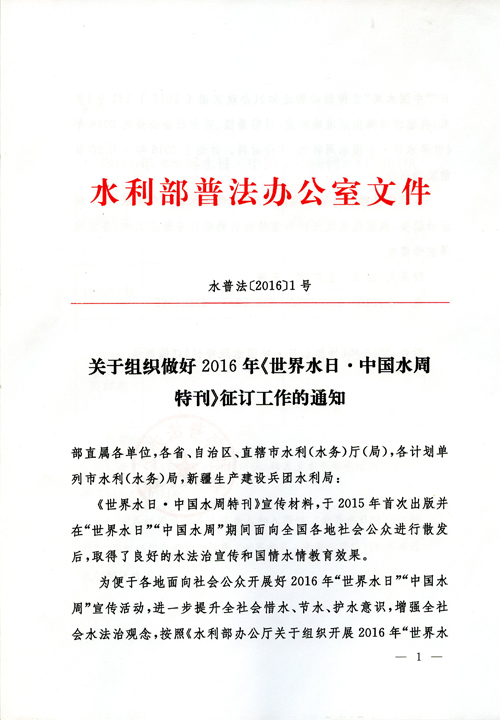 關(guān)于組織做好2016年《世界水日·中國水周特刊》征訂工作的通知