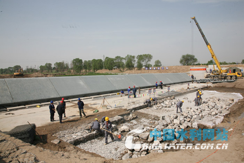 中國水利網(wǎng)站5月11日訊(記者 魏永平)5月9日,在山西汾河中游核心區(qū)蓄水工程施工現(xiàn)場,記者看到1號攔河液壓壩工程已顯現(xiàn)雛形。據(jù)施工單位負(fù)責(zé)人介紹,新建的1號攔河液壓壩工程軸線壓翻板閘全長237米,采用全斷面蓄水,蓄水閘壩均采用可升降的液壓翻板閘。目前,1號壩已完成全部水泥土地連墻工程和大部砌石防護工程,土建工程形象進度累計已完成近80%,安裝工程已完成主槽段全部13扇閘門的吊裝工作,正在加緊進行液壓管路鋪設(shè)、油缸解鎖缸安裝等工作,預(yù)計主槽段安裝工程在5月底前全部完成。