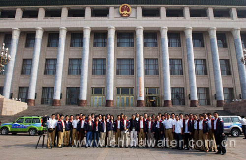 中華環(huán)保世紀(jì)行赴太湖記者團(tuán)從北京人民大會堂前出發(fā)