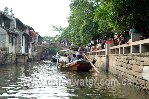 提起江南水鄉(xiāng),人們恐怕首先會(huì)想起周莊。900余年的歷史和優(yōu)美的水環(huán)境被人們譽(yù)之為“中國(guó)第一水鄉(xiāng)”。 周莊位于江蘇昆山市南端,全鎮(zhèn)水域面積超過(guò)國(guó)土面積的三分之一。周莊鎮(zhèn)黨委書記說(shuō),水是周莊的靈魂,水資源保護(hù)是古鎮(zhèn)保護(hù)與環(huán)境保護(hù)的核心所在。近3年來(lái),全鎮(zhèn)投入了1000多萬(wàn)元用于河道疏浚、清淤與整治,組織專業(yè)隊(duì)伍清潔水面。 本站記者 鞏勁標(biāo) 攝