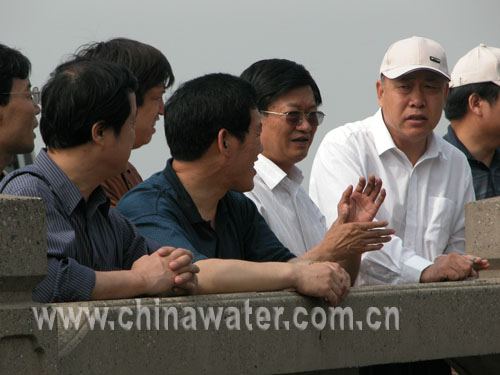 檢查組在檢查盧溝橋攔河閘并聽(tīng)取匯報(bào)