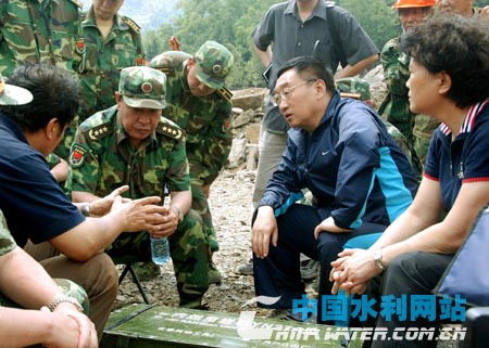 本站6月8日唐家山訊(記者 馬加 馬俊鵬)6月8日下午,國務(wù)院抗震救災(zāi)總指揮部水利組組長、水利部部長、水利部抗震救災(zāi)指揮部總指揮陳雷再次飛抵唐家山堰塞湖排險施工現(xiàn)場,查看導(dǎo)流明渠過水及施工情況,部署有關(guān)工作,進(jìn)一步加大工程排險力度。