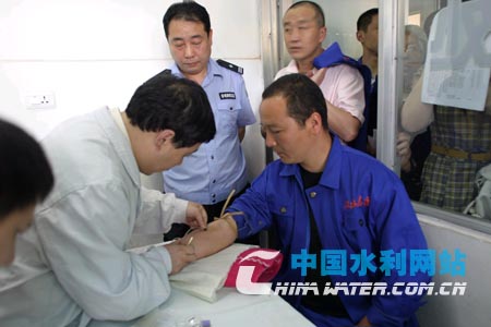 漢江集團抗震救災搶險隊員出發(fā)前化驗血型 吳丹明 攝