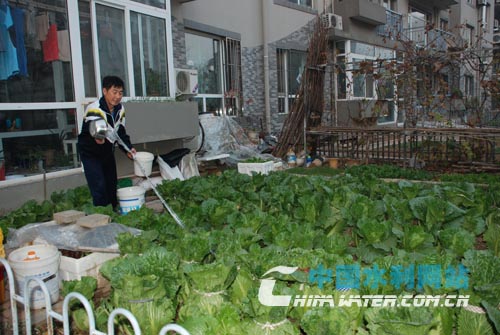中水的使用也使許多小區(qū)居民樹(shù)立了節(jié)約用水的觀念。吳先生家的衛(wèi)生間里,堆著7個(gè)桶和8個(gè)盆。他說(shuō)這些水盆、水桶都是平時(shí)家里用來(lái)貯存水的,家里第三遍的洗菜水一般還可以用來(lái)刷碗。吳先生還用一個(gè)小水缸將雨水管里的水收集起來(lái),澆灌門(mén)口的菜地。