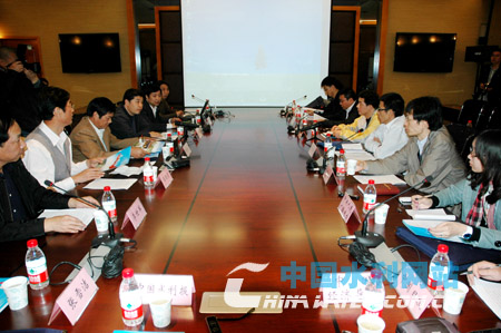 采訪組與建管局負(fù)責(zé)人就水庫(kù)建設(shè)與管理等內(nèi)容進(jìn)行座談和采訪