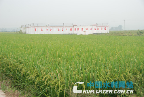 在黃解桂家的稻田邊,“貫徹落實中央1號文件,抓好農(nóng)田水利設(shè)施建設(shè)”的大標(biāo)語赫然醒目