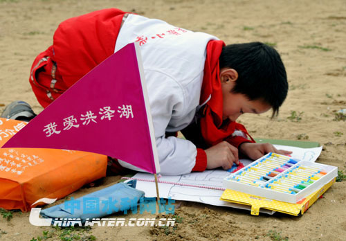 “萬里行”社會實踐班300名學(xué)生、100名美術(shù)興趣班學(xué)生及30名小記者班學(xué)生,手執(zhí)印有“我愛洪澤湖保護水資源”字樣的七彩宣傳旗徒步前往洪澤湖邊開展主題活動。在經(jīng)過位于洪澤湖大堤34.6K處的江蘇省湖泊保護條例宣傳標(biāo)牌時,洪澤縣水政大隊負責(zé)人為小學(xué)生們進行了一場生動的湖泊保護知識講解。到達洪澤湖邊后,美術(shù)興趣班的學(xué)生們在老師的帶領(lǐng)下,開始進行以“我愛洪澤湖”為主題的繪畫采風(fēng)活動,縣水利局工作人員向?qū)W生們發(fā)放水法規(guī)知識宣傳單,開展了“保護洪澤湖從清理垃圾做起”等活動;顒悠陂g,所有的孩子們都熱情參與,整個活動氣氛熱烈、生動活潑,同學(xué)們紛紛表示,將以自己的小手為保護水資源、保護洪澤湖、保護母親湖出一分力、發(fā)一分光。洪澤縣攝影家協(xié)會的攝影師以及實驗小學(xué)的小記者們用鏡頭對活動全程進行了記錄。