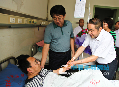 中國(guó)水利網(wǎng)站特稿 7月3日,陜西省水利廳副廳長(zhǎng)薛建興帶領(lǐng)省防辦工作人員,專程趕赴南鄭縣醫(yī)院,看望了正在接受治療的南鄭縣水利局副局長(zhǎng)公燁和總工程師劉文忠,并送上了慰問品。