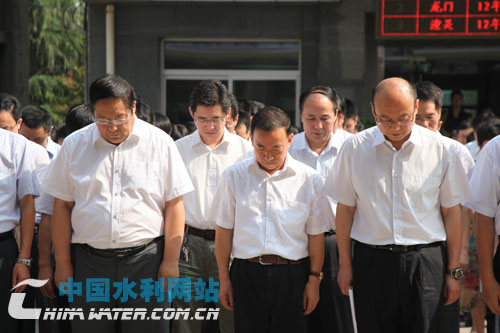 中國(guó)水利網(wǎng)站西安訊(記者 王辛石)7月5日上午9時(shí)30分,陜西省水利廳機(jī)關(guān)大院內(nèi)人群肅立,氣氛凝重。在“沉痛悼念抗洪英雄蔣安成同志”白底黑字橫幅下,陜西省水利廳300多名機(jī)關(guān)干部在廳長(zhǎng)王鋒帶領(lǐng)下,集體為在抗洪一線因公殉職的南鄭縣水利局長(zhǎng)蔣安成默哀三分鐘。與此同時(shí),陜西省水利廳廳直系統(tǒng)19個(gè)單位和5個(gè)重點(diǎn)工程建設(shè)工地1萬(wàn)余名干部職工也分別進(jìn)行了集體默哀儀式,共同悼念蔣安成同志。