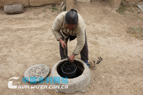 在離供水站不遠(yuǎn)的趙岔村,村長(zhǎng)魏國(guó)華帶上我們?nèi)タ创迕窭蠲艏抑械募晁,窖里之前蓄積的雨水用完了,今天剛剛請(qǐng)人拉水來(lái)裝滿(mǎn),20立方米的小水窖可以夠他們和鄰里5戶(hù)人家吃一個(gè)月!斑@水是50元一方請(qǐng)人拉來(lái)的,只夠喝,至于洗澡洗衣服,下雨前還是暫時(shí)別想了,舍不得水!崩畲鬆敇(lè)呵呵地說(shuō)。