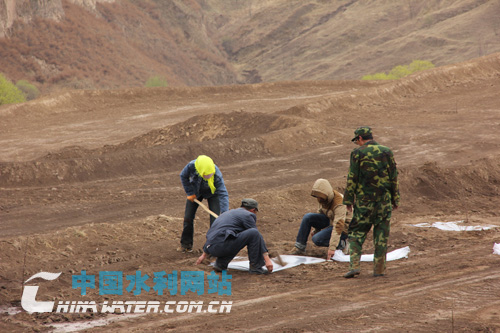 靜寧縣祁岔村果農(nóng)正在鋪地膜