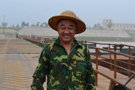 當時,正值黃河汛期,由于上游降水嚴重,黃河水位一路攀高,為保障黃河下泄河道通暢無阻,東平黃河鑫通浮橋按照上級防汛指揮部門的指令,需要立即拆除浮橋“讓道”黃河。身為黃河浮橋職工的孫滸與同事們開始浮橋拆除前的準備工作,他們頂烈日,冒酷暑,灑熱汗,放棄休息時間,按照指令把浮橋拆除前的準備工作就緒,使東平段浮橋得以順利拆除。在短暫的休息之際,要求我為他拍攝張照片,我欣然同意。