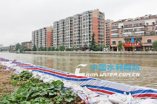 防滲布圍擋在常州市大運河原戚墅堰區(qū)段岸邊 本報記者 劉文杰 攝