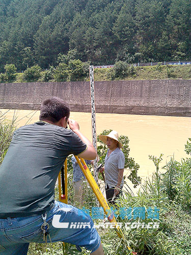 應(yīng)急監(jiān)測隊員現(xiàn)場測量水位、流量 歐陽浚/攝