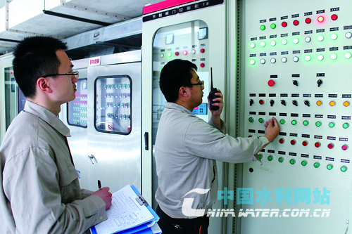 水閘值班人員檢查機(jī)電設(shè)備,確保安全運(yùn)行