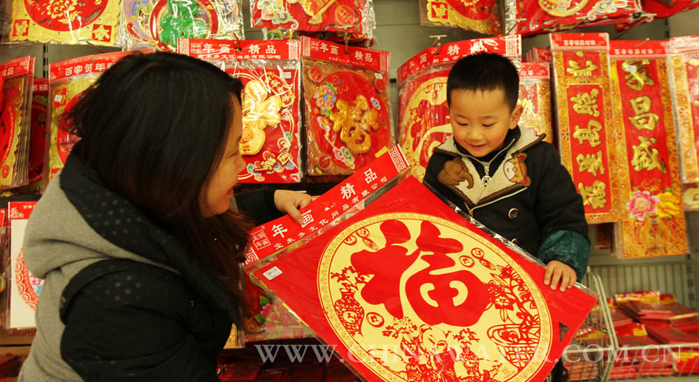 農(nóng)歷大年三十,湖北房縣一位名叫張峻琦的小朋友正在超市選購(gòu)年畫,送給還在加班的爸爸。張峻琦的爸爸在縣水務(wù)局辦公室工作,平時(shí)加班加點(diǎn),就連節(jié)假日也難得休息。兒子在電話里對(duì)他說(shuō),“爸爸好辛苦,我在超市買了福字送給您,讓您更加快樂(lè)地工作。”(作者:張啟龍 石明鑫)