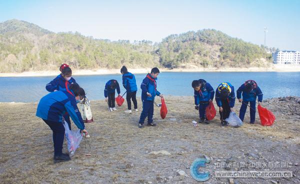 在革命老區(qū)湖北省紅安縣七里坪鎮(zhèn),列寧小學(xué)的學(xué)生在紅安縣“民間河長”周穎老師的帶領(lǐng)下,到煙寶地水庫撿拾垃圾,并向周邊群眾宣傳保護(hù)環(huán)境、愛河護(hù)水的知識。