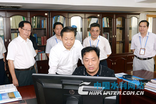 廣西壯族自治區(qū)黨委書記彭清華(右四)檢查指導(dǎo)水利工作(本報記者 駱遠(yuǎn)柱/攝)